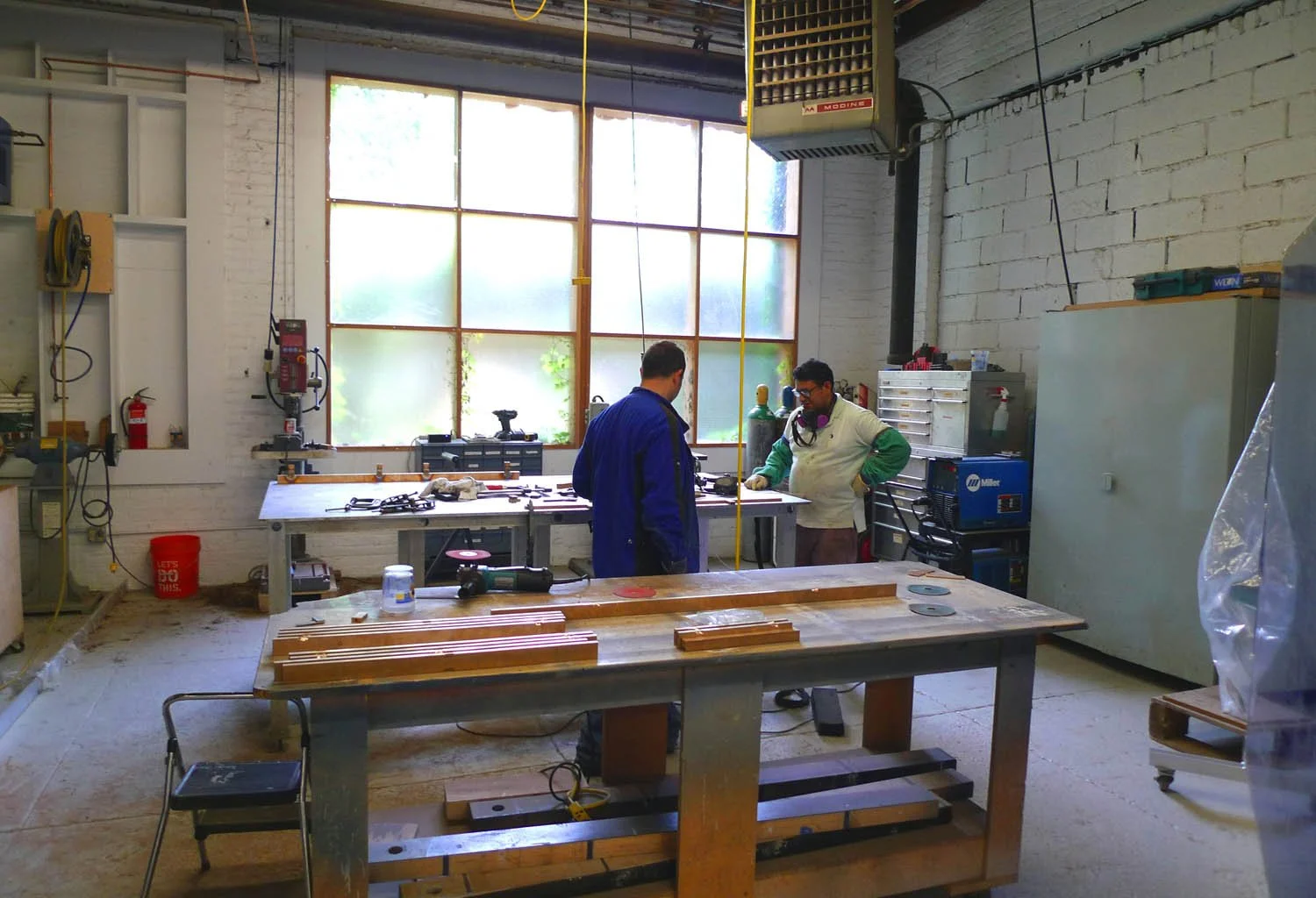 The KGBL workshop was originally located across from the Brooklyn Navy Yards. As with many buildings in the rapidly gentrifying area, the work-loft units were scheduled to be converted to residential lofts. In 2017, the workshop moved to a larger, more functionally efficient space in the East New York neighborhood of Brooklyn. This new facility provides KGBL with additional space for metalworking, woodworking, fuming and finishing, as well as an office area.